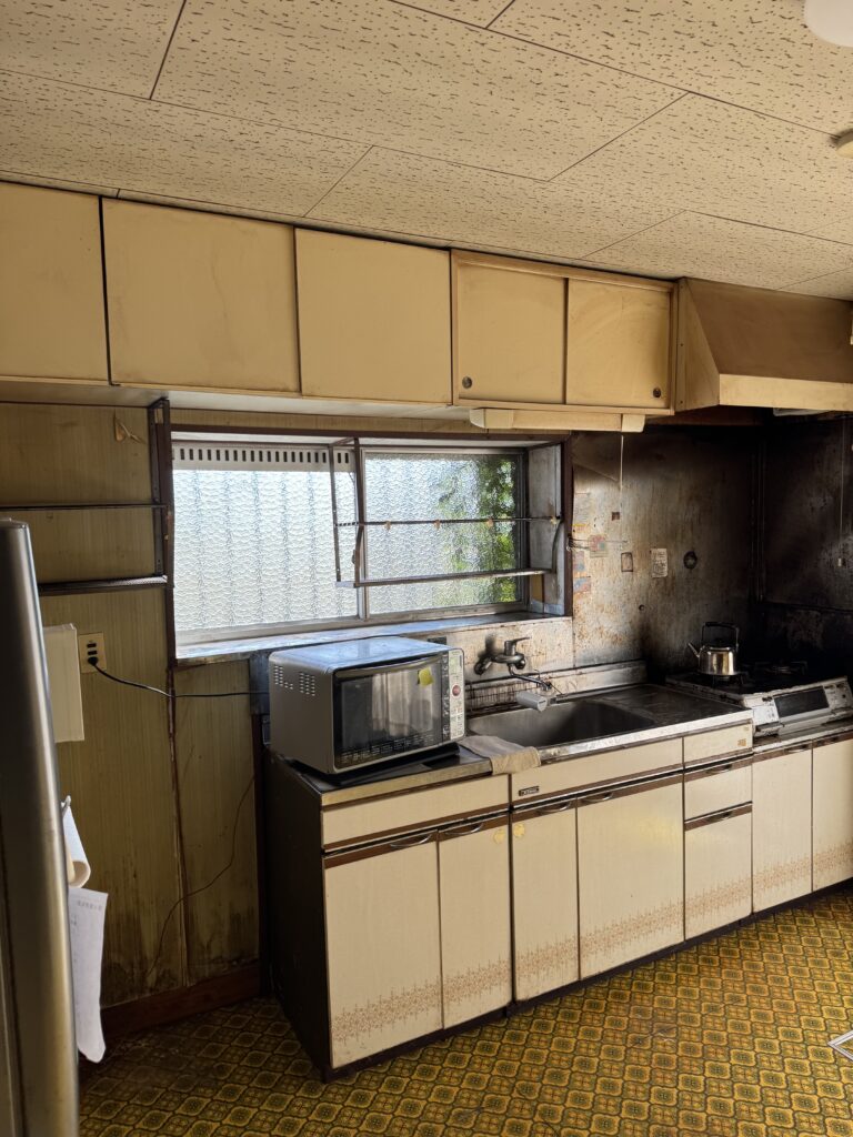 お客様より、築50年が経っている台所を綺麗にしたいので見に来ていただけないかとお問合せいただきました。